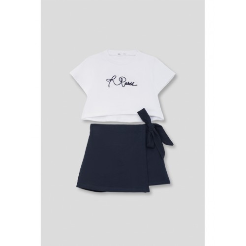Girls' t-shirt and culottes set available in sizes 2 to 16 years. White t-shirt with "Paris"