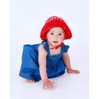 Collection: UNDER THE SEACategory: HatRed knitted hat for girls with a white checkered pr..
