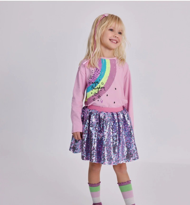 Girls' short skirt with a sparkly design, completely covered in sequins in