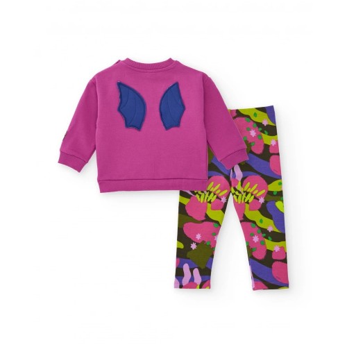 Girls' set featuring a fuchsia sweatshirt with a fun face embossed front design and 3D details,