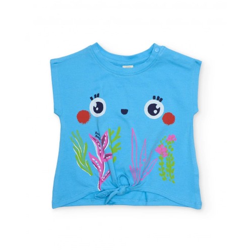 the hem that gives it a relaxed touch. The second T-shirt, in blue, shows a playful character surrounded
