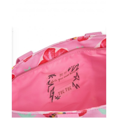 Girls’ bag featuring a charming floral print in pink tones with vibrant accents that bring