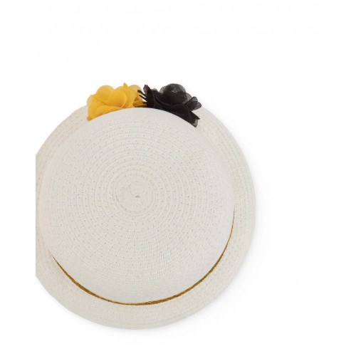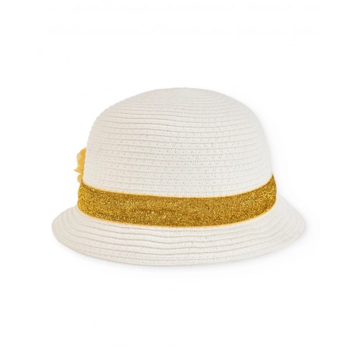 White girls’ hat made from a lightweight, breathable raffia-style fabric, ideal for sunny days.