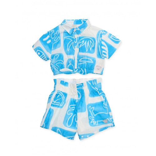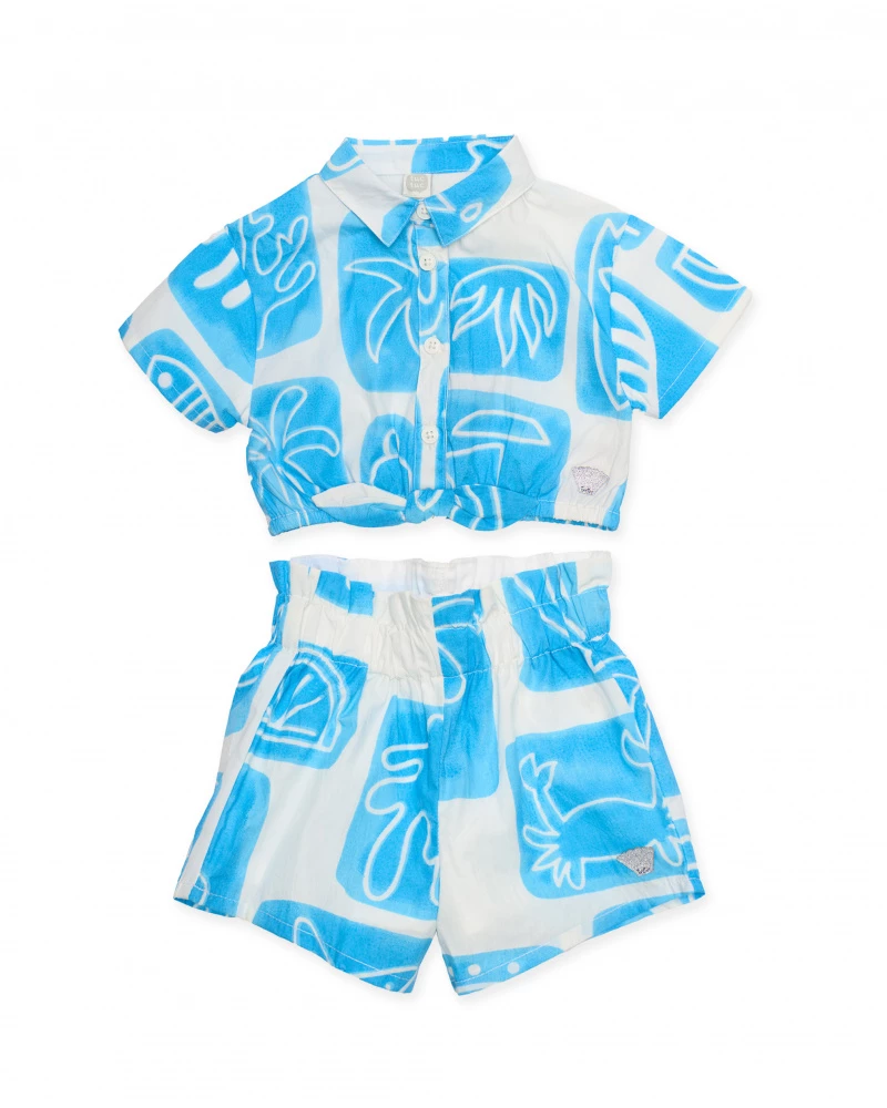 Girls’ set in white with a blue print, made from a lightweight and breathable fabric ideal for