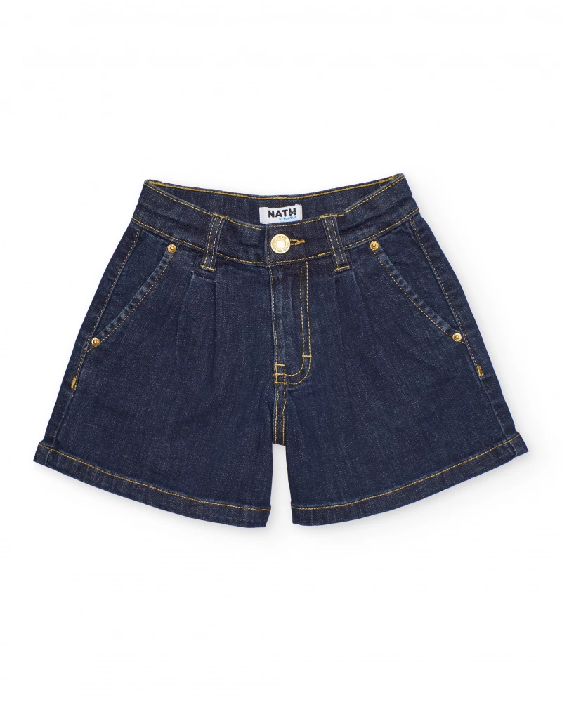 Dark blue denim short for girls made from a soft yet durable fabric that ensures everyday