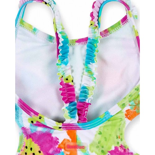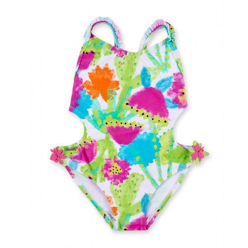 Green swimsuit with butterfly print and front wing appliqué for girls.Collection:TropadelicCategory:..