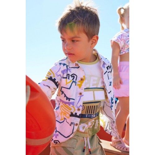 Collection: Say CheeceCategory: t-shirtBoys' white knit T-shirt with a vehicle print in shades..