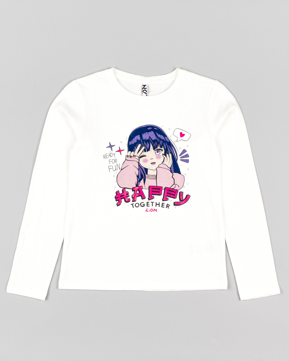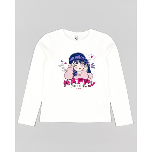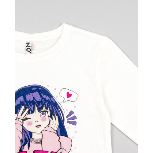 Collection: K-PopCategory: t-shirtWhite knitted T-shirt with a K-Pop girl print for girls..