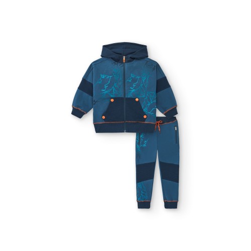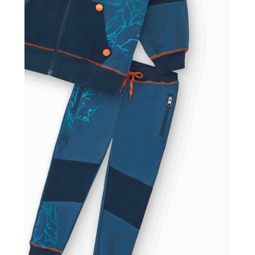 closure and pockets with buttons. Blu plush pants with zip pocket detail and drawstring at the waist.