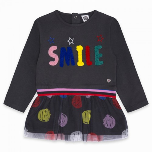 JERSEY AND TULLE DRESS MESSAGE FOR GIRLS GREY ARE YOU READY?