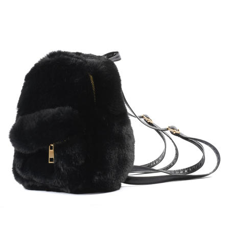 Very cute iDO black backpack for your girl. The backpack is made of eco-fur with a front pocket and zip opening