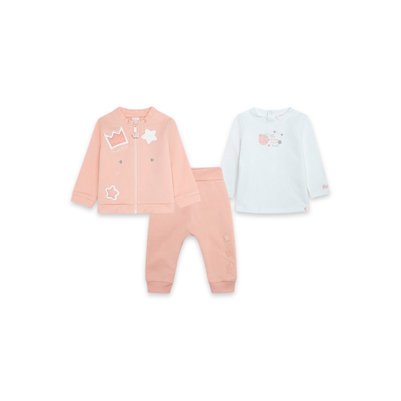PINK PLUSH AND JERSEY 3 PIECES SUIT FOR GIRLS LUNA LLENA FW21