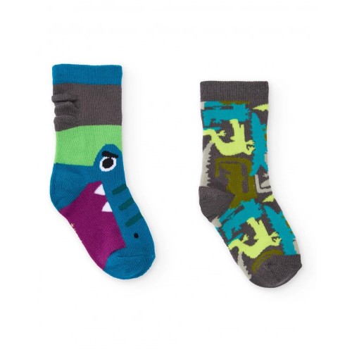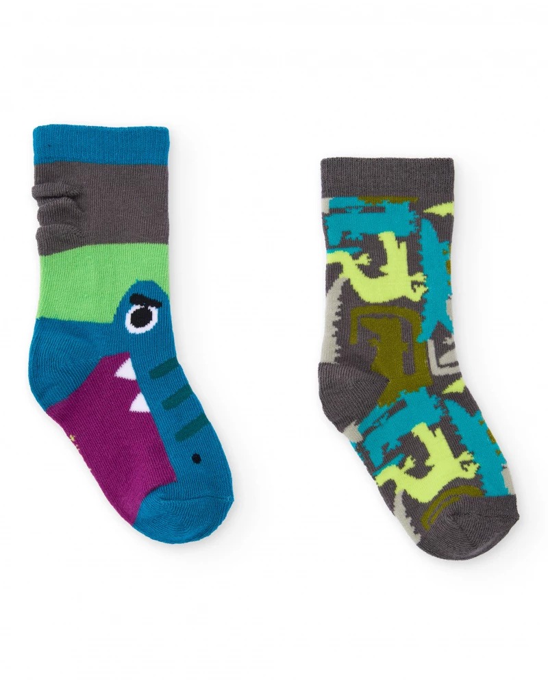 Pack of boys' socks with dinosaur design and embossed details