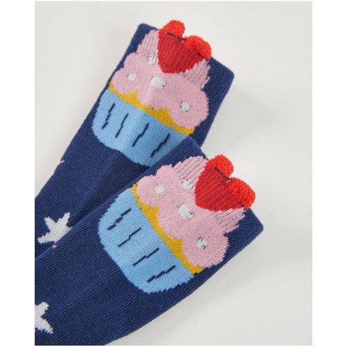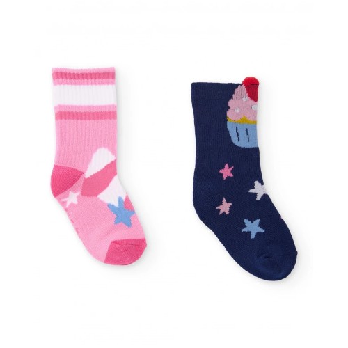 Pack of two pairs of girls' socks in navy blue and pink with star and ice cream motifs