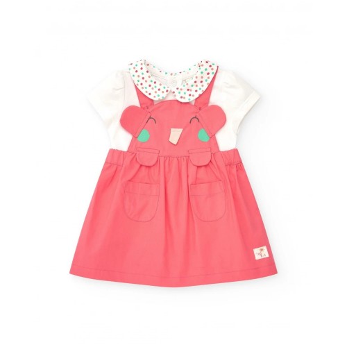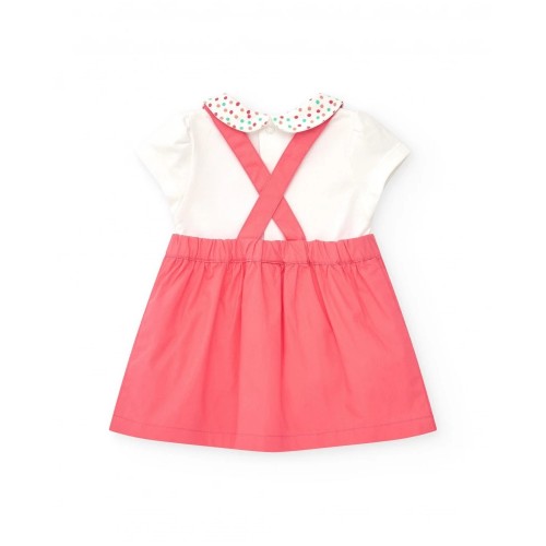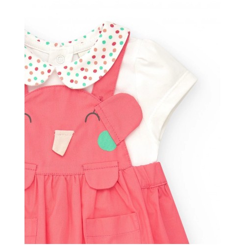 Pink overalls for girls with embossed elephant and white polka dot t-shirt