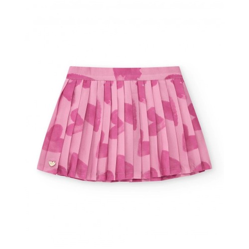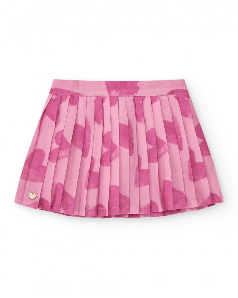 Pink pleated skirt for girls with an abstract print. It has an elasticated waist for added comfort.