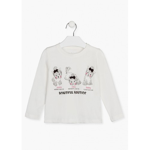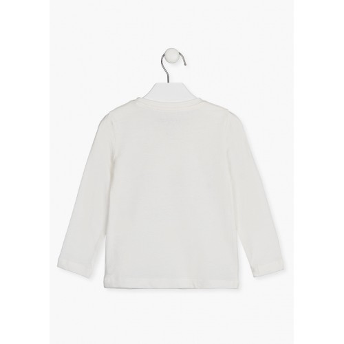 Μακρυμάνικο πλεκτό μπλουζάκι σε εκρού χρώμα. Περιλαμβάνει