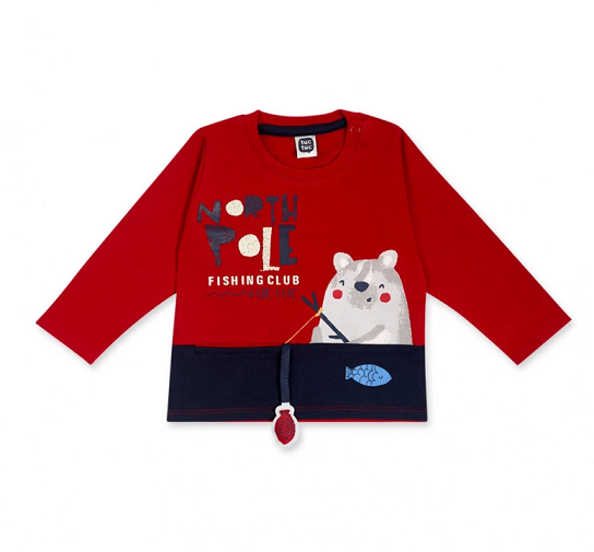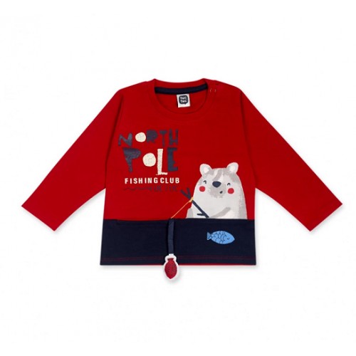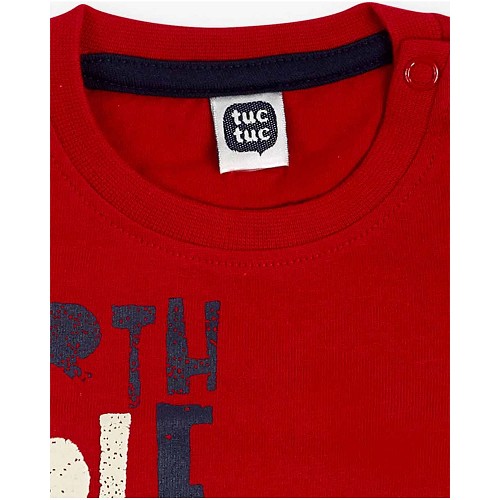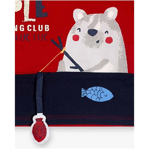 Red jersey t-shirt for boy with polar bear print and lettering details