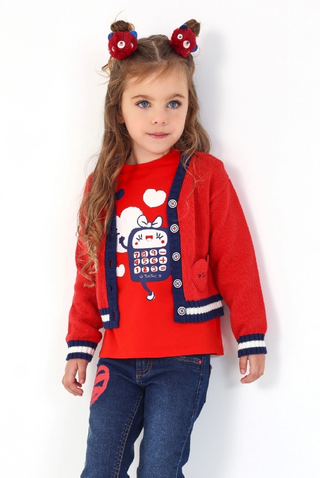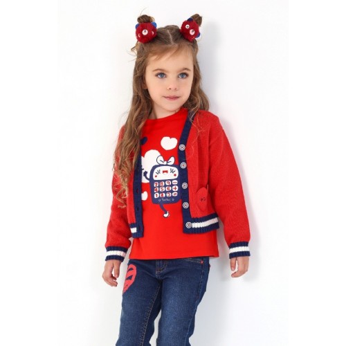 Red knitted jacket for girls with embroidered details from the Big Brains collection