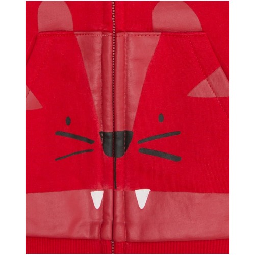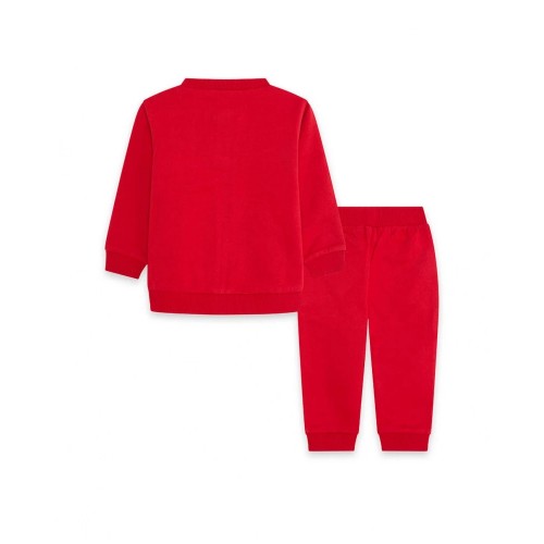 Red plush tracksuit for boy with wolf print.