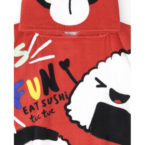 Red poncho towel for children sushi collection