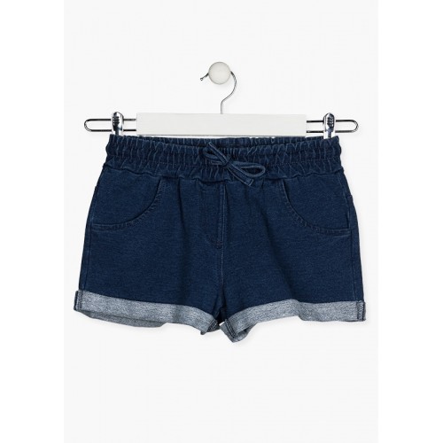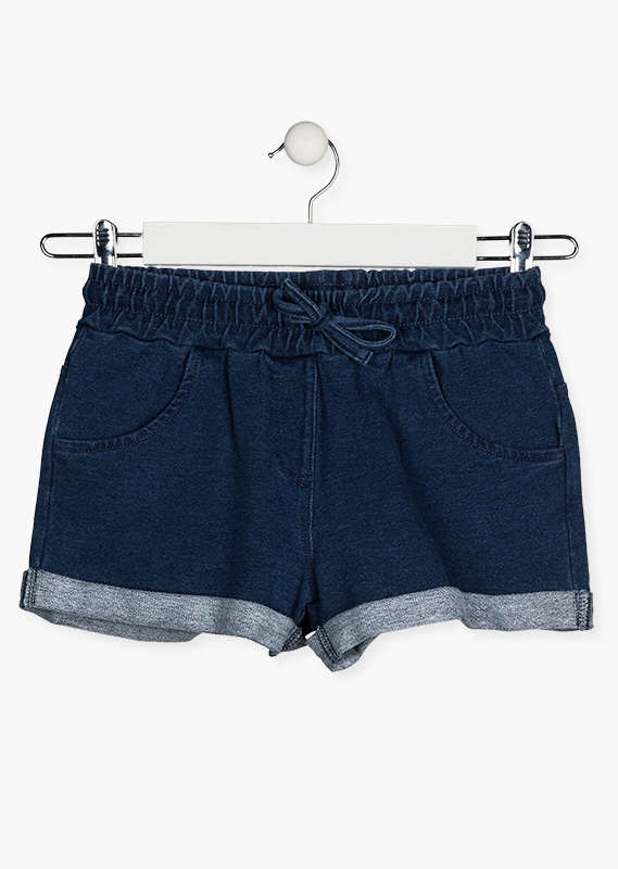 Βελούδινα σορτς τζιν. Φινίρισμα με ελαστική ζώνη μέσης με ρυθμιζόμενο