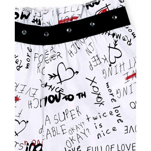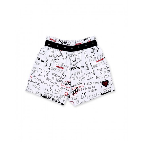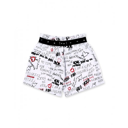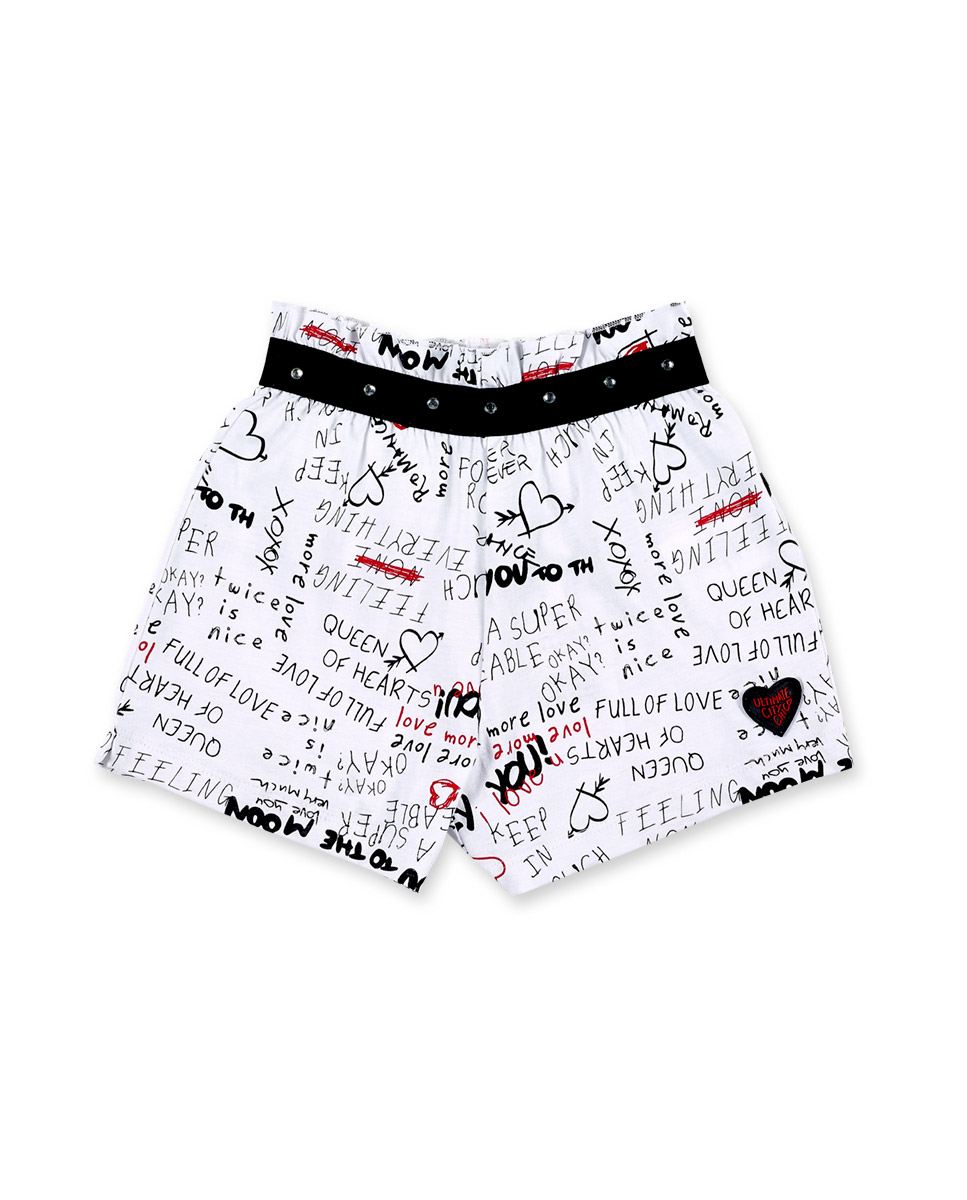 White denim shorts with shiny appliqués, pockets and elastic waist for girls.Collection: Ultima..