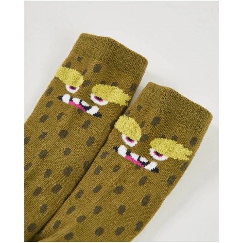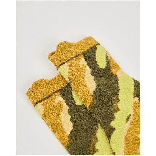 A set of boys' socks featuring a fun camouflage print in shades of yellow and green,