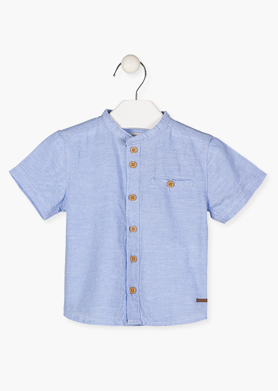 Πουκάμισο λινό με Κοντό μανίκι λινό πουκάμισο με mandarin κολάρο για αγοράκι.