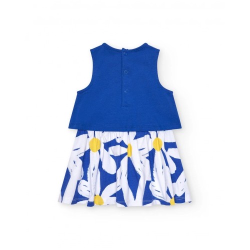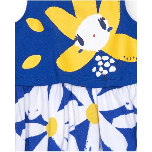 Sleeveless blue dress for girls with flower and daisy skirt