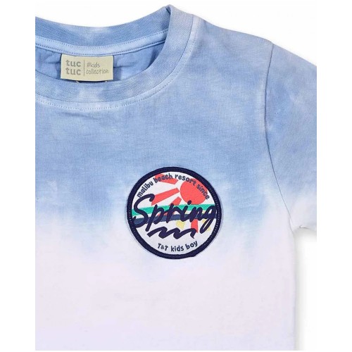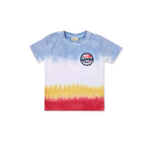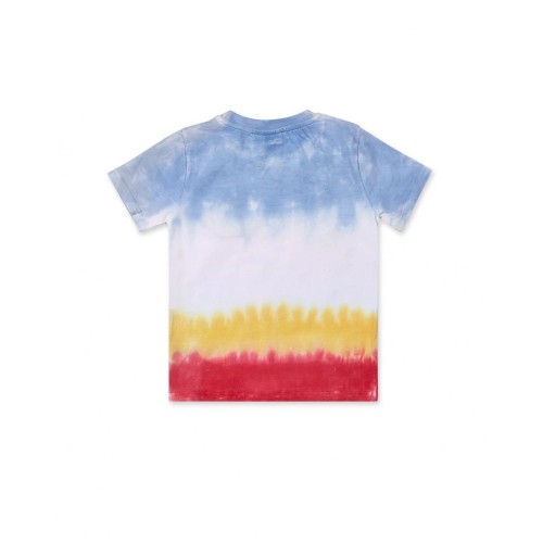 Knitted t-shirt, tie dye style in blue, white, yellow