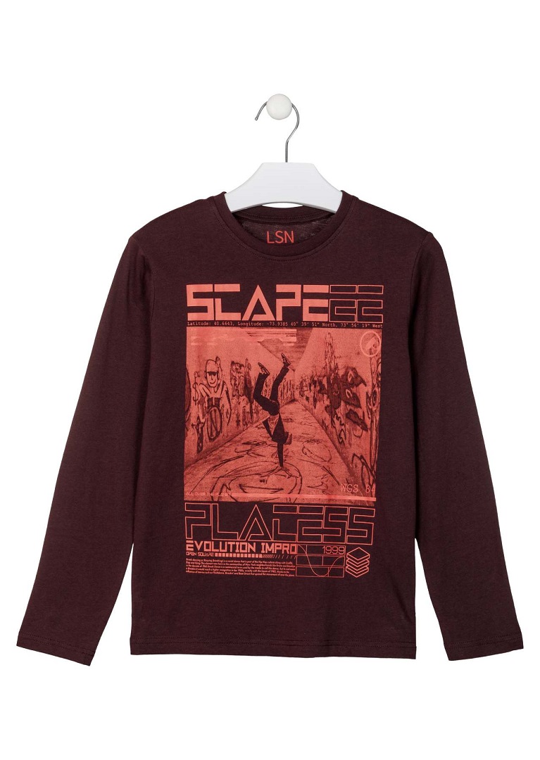 T-SHIRTS AND POLOS: 100% COTTONJUNIOR BOY'S LONG SLEEVE T-SHIRT IN SINGLE JERSEY "ENJOY BETTER COTTO..