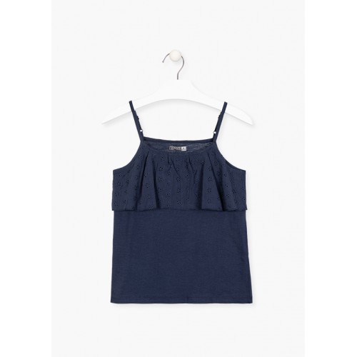 Μπλουζάκι με κεντημένο floral βολάν για κοριτσάκι. Κορυφή με ρυθμιζόμενους