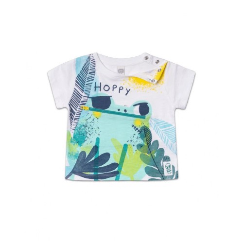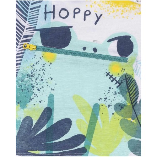 White knitted t-shirt with pirate frog and leaves print for boy