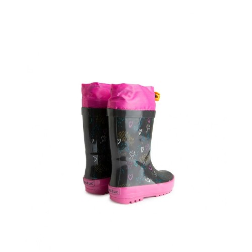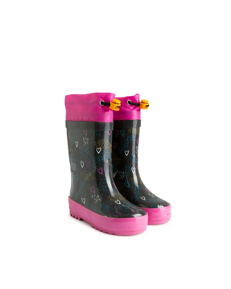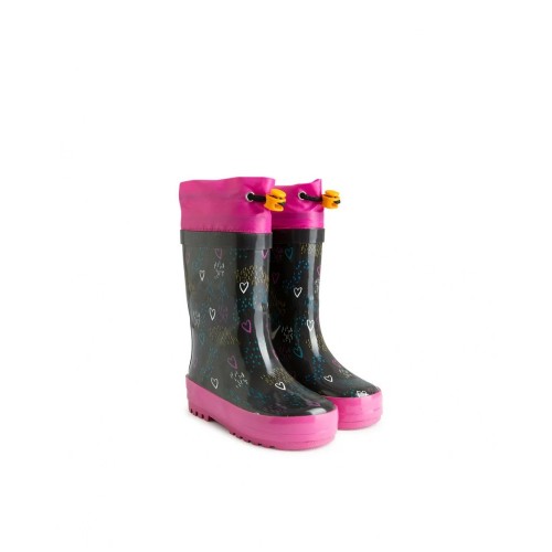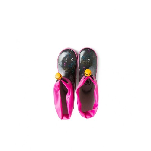 Boy's gray wellies with game print and lights on the sole with drawstring.