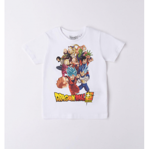 iDO boy's T-shirt in 100% cotton jersey in a variety of prints. The model is part of the Dragon Ball capsule
