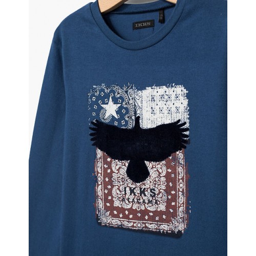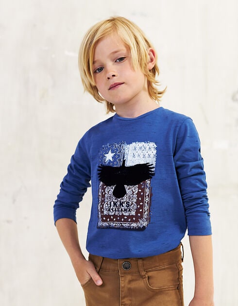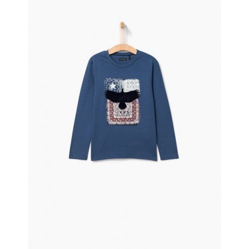 Boys' off-white T-shirtRound neck, long sleevesCat-biker with helmet and googles graphicCome into th..