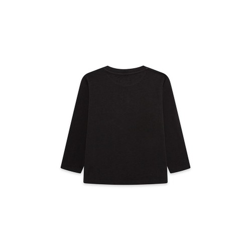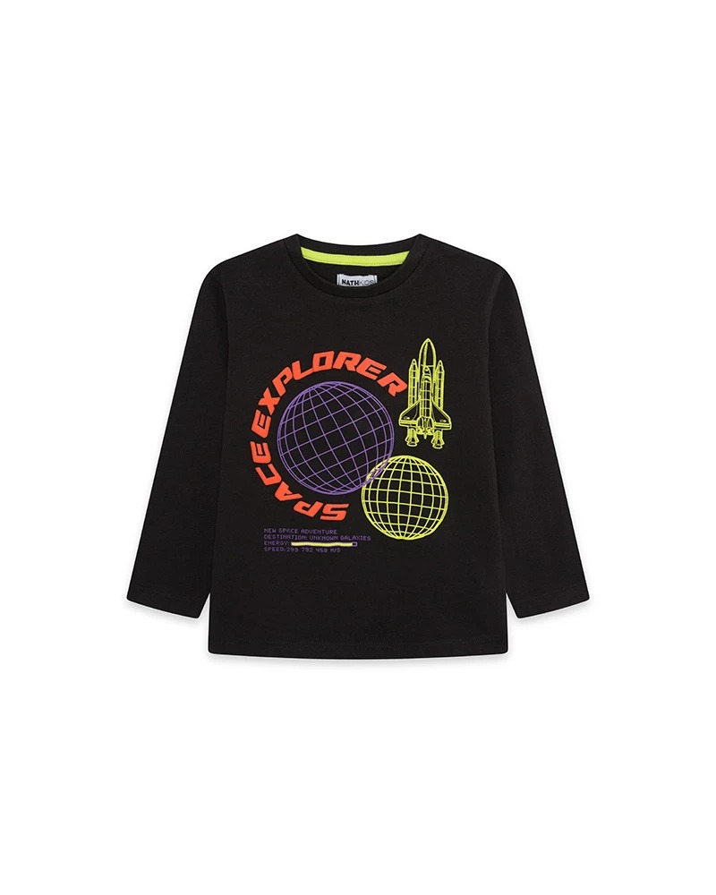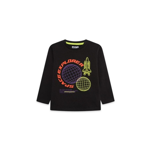 Black long-sleeved knit t-shirt with spaceship print for boy