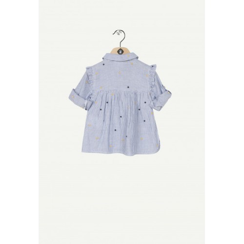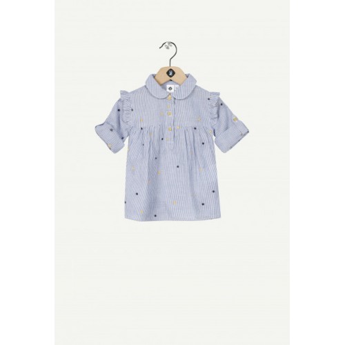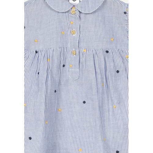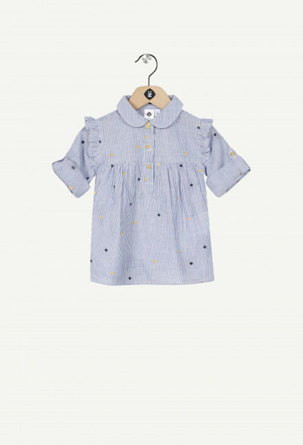 ΤΟΥΝΙΚ με μπλε κάθετες λεπτές ρίγες. Κεντημένα πολύχρωμα πουά.